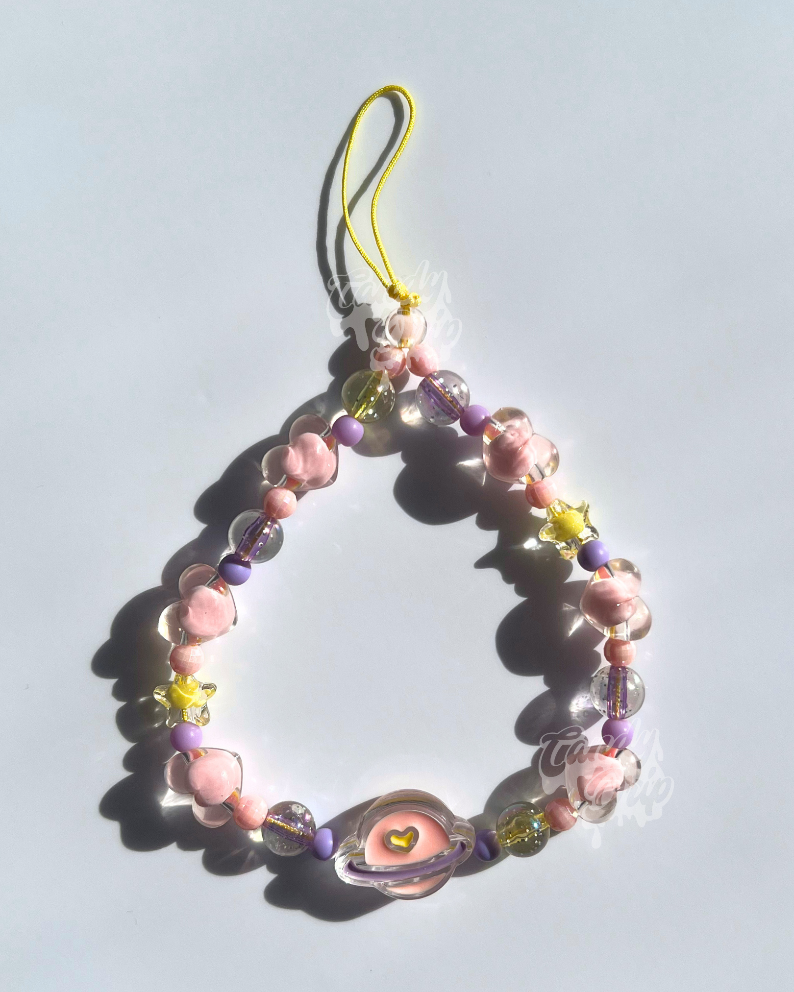 Wear a bit of cosmic cuteness on your wrist with our Saturn Love! π« Featuring heart asteroids, shooting stars and an out-of-this-world, chunky saturn bead, this wrist strap is sure to bring a bit of stellar energy to your everyday! πͺ